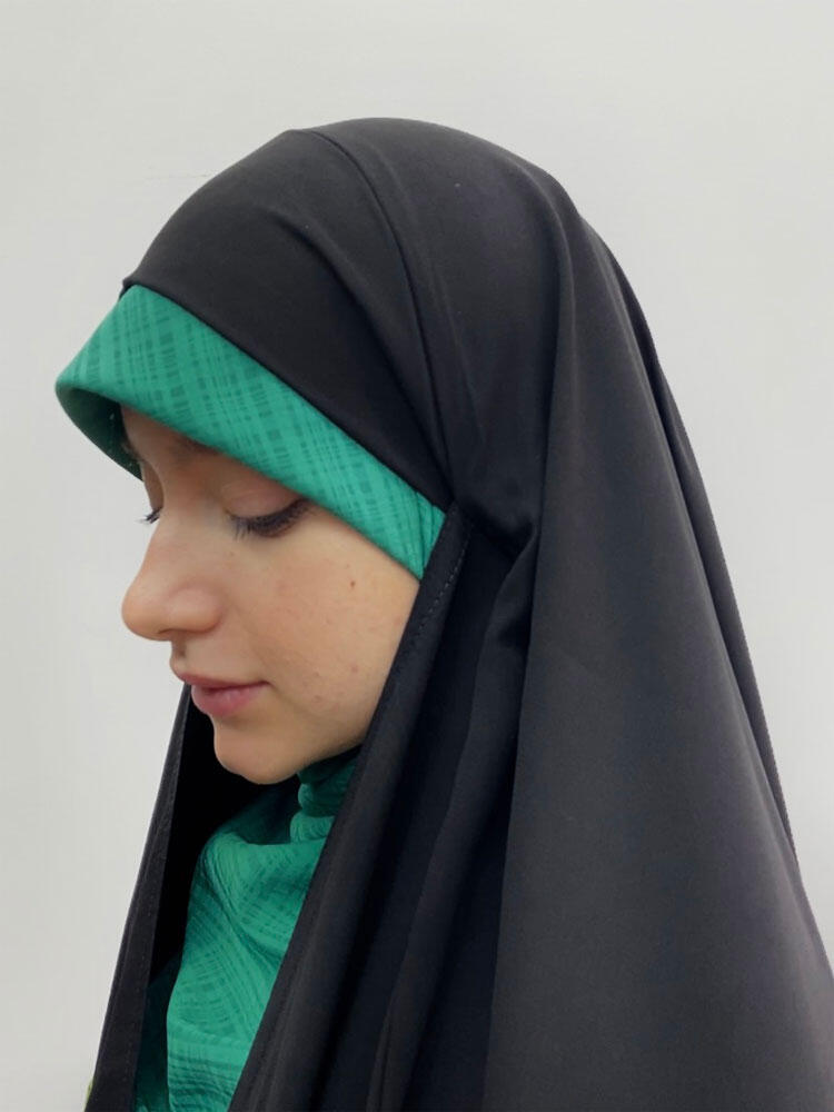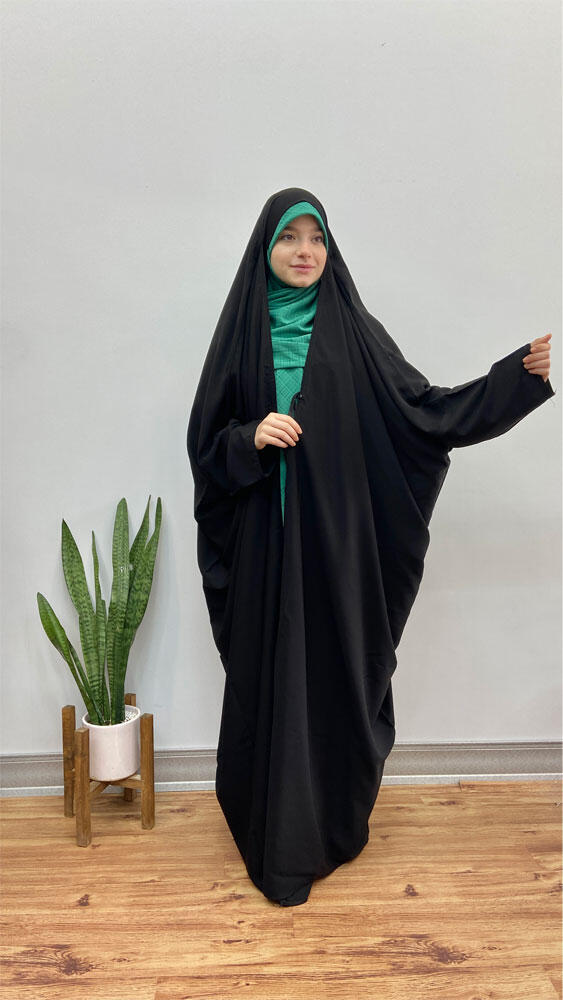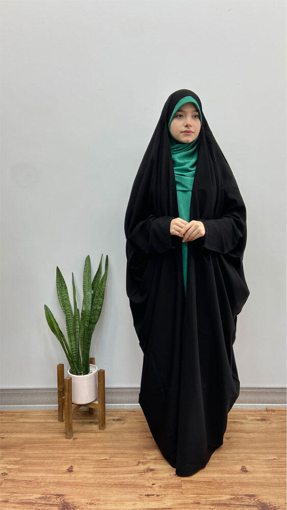 • جزئیات مدل : مشابه با چادر لبنانی/چادر دارای بند با کش یا دکمه بسته میشود/دارای نقاب (پوشیه)/تیکه استین وجلو سر باعث ایستادگی عالی میشود/کش بر روی سر دارد